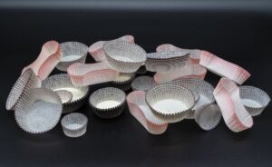 Contenitori per alimenti in carta svedese con bordo a fisarmonica, disponibili in varie misure.
